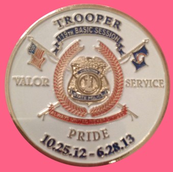 The Appomattox coin was pre-produced with the American flag flanked over the top of the badge.